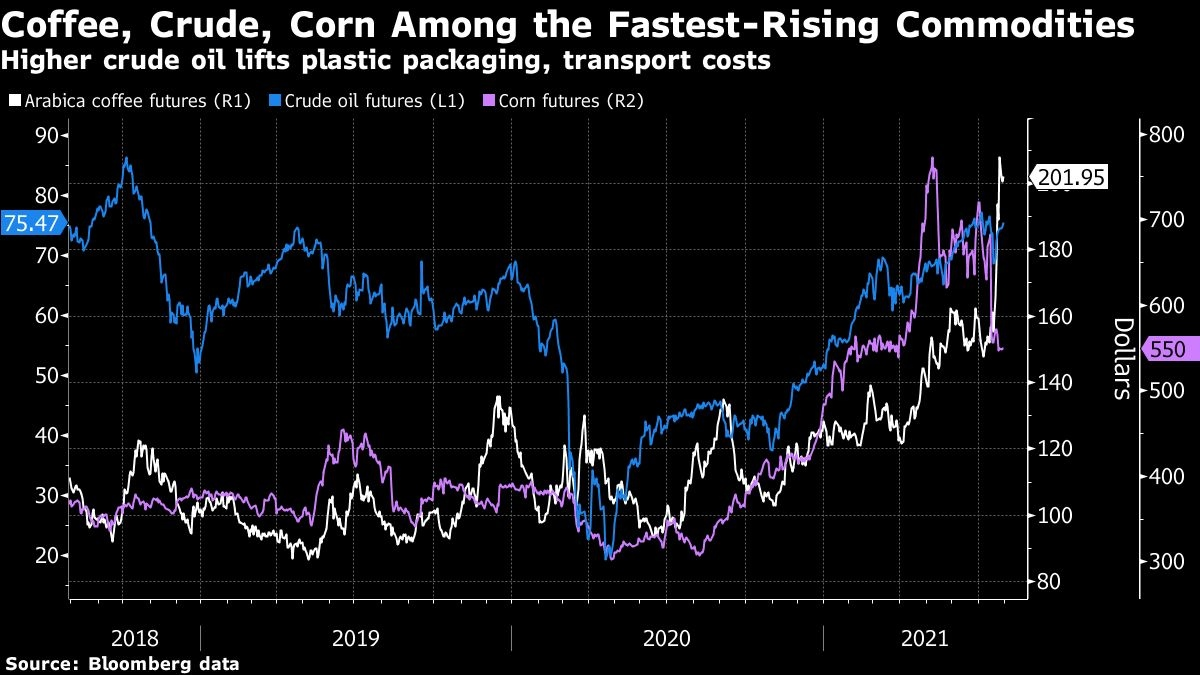 咖啡金融网(www.coffinance.com)消息,受到大宗商品通胀压力下,全球最大的咖啡、啤酒、威士忌和酸奶制造商们都纷纷表示,尽管疫情好转下帮助销售业绩反弹超过预期,但对未来的利润率担忧。
