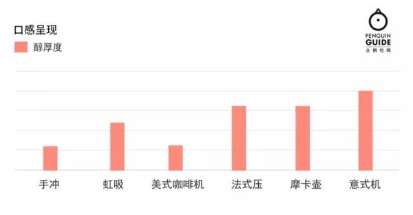 在入口的醇厚度上,基本上越浓的咖啡口感越厚实。意式浓缩机和法式压喝起来最为醇厚。