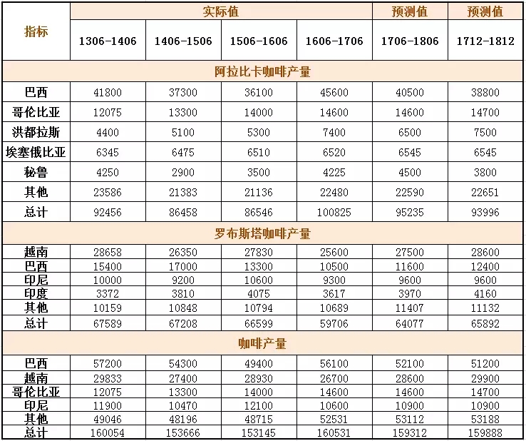 表1:咖啡产量统计(单位:千袋;60公斤/袋)