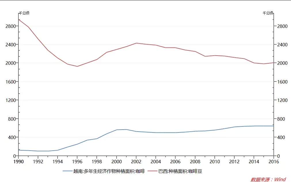 (二)从种植面积来看,巴西种植面积的下降对咖啡价格构成支撑。