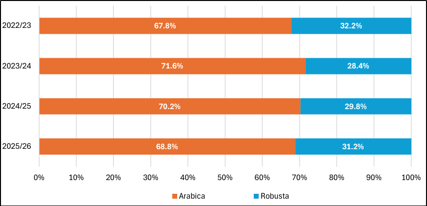 图表4:阿拉比卡与罗布斯塔咖啡出口占比表现